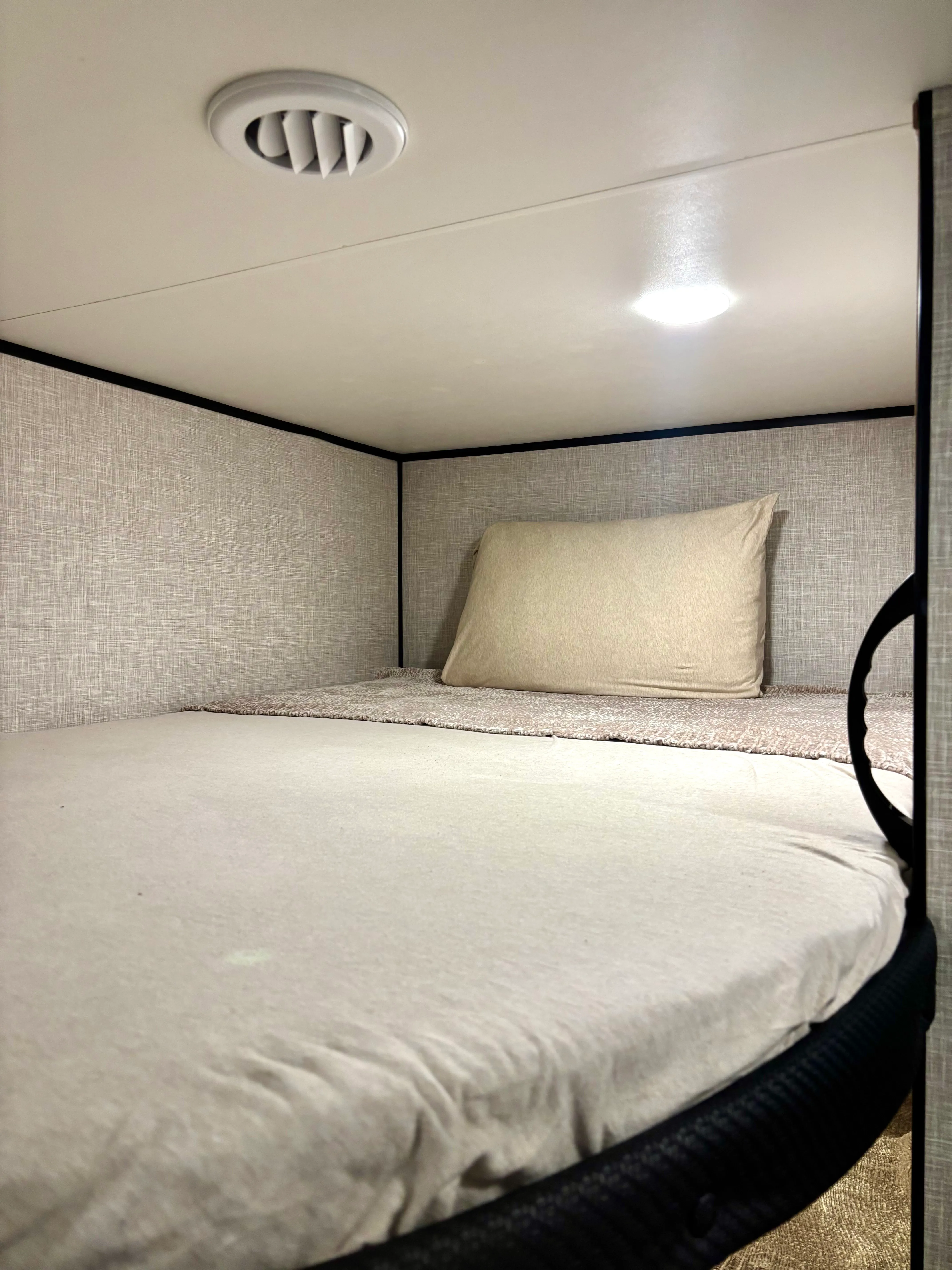 Accommodates up to 8 people, with a full bed, bunk beds, convertible dinette, and pull-out sofa for a cozy night’s sleep.